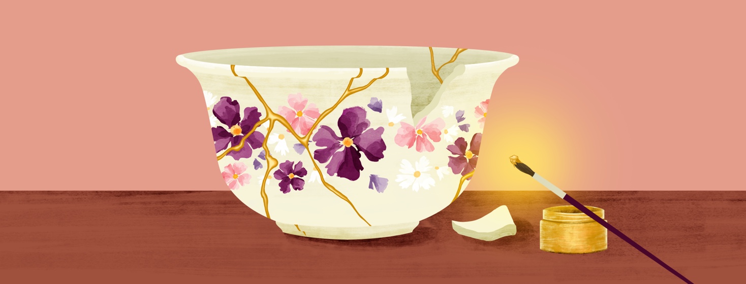 So, what can we do with these massive life-altering obstacles and/or blessings? Find a new normal. Flood waters recede, the dust settles, and we pick up the pieces and make something new. There’s a Japanese art called “kintsugi.” Broken vases and pottery aren’t tossed away, but repaired with gold. This makes them stronger at the weakened points and more precious than they were to begin with. They don’t treat the break as a flaw, but as an important part of the story of the piece.